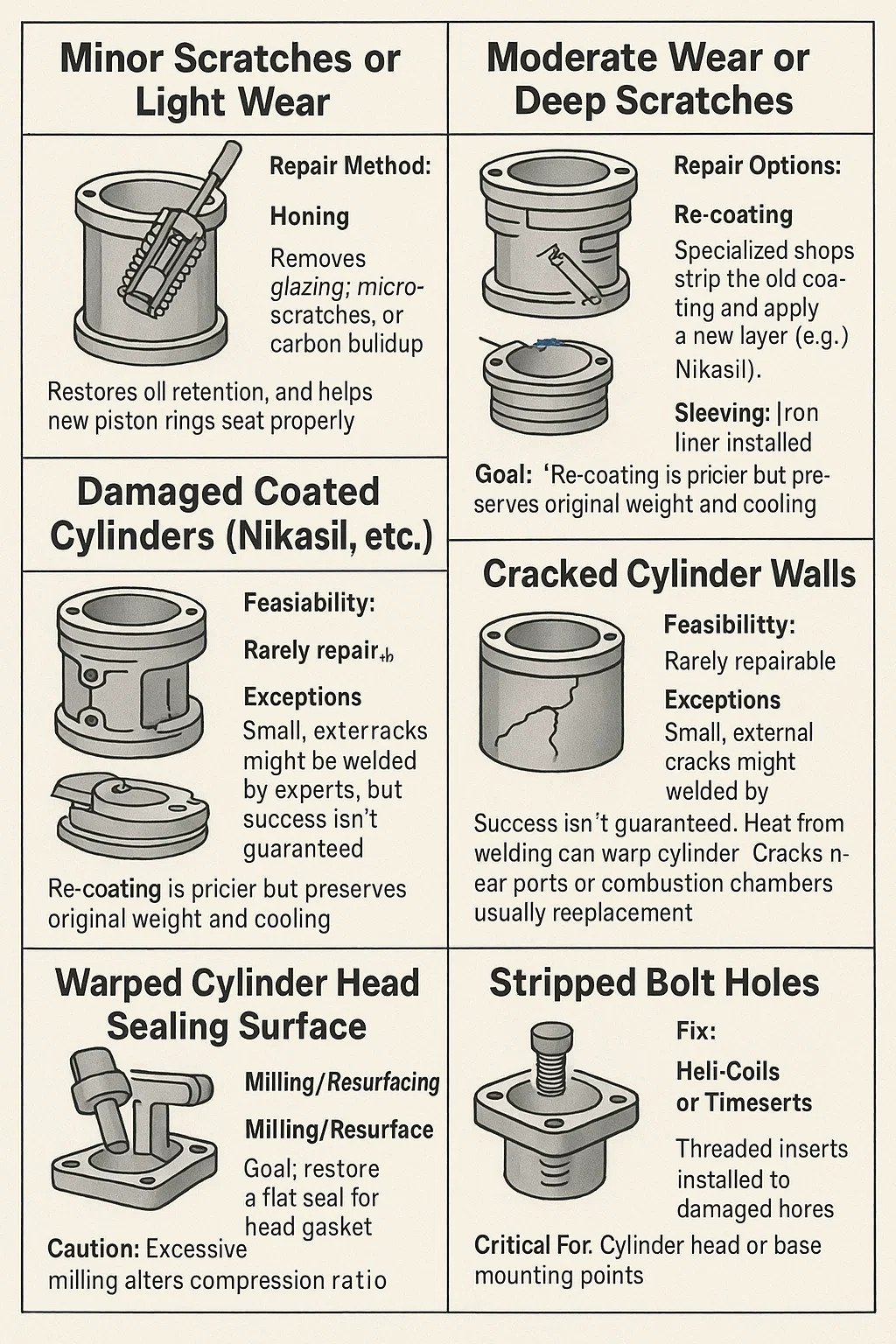 Sama sekali, Silinder Motosikal sering boleh diperbaiki bergantung kepada jenis dan keterukan kerosakan. Inilah kerosakan praktikal: